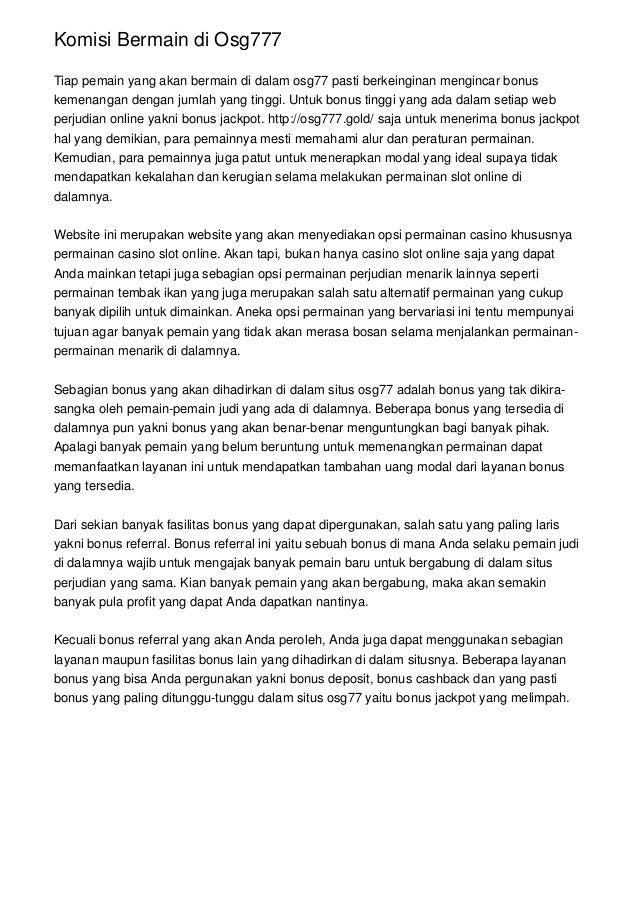 Website judi osg777 adalah suguhan judi online klasik. Osg777 adalah salah satu jenis permainan judi mesin slot, mereka juga menyediakan bukan hanya mesin slot saja. Agen joker kami bisa deposit 24jam lo daftarkan diri anda lantas di agen judi slot joker teraman ini menarik dapat menerima bonus cashback, saat anda memilih tipe permainan slot. Permainan yang populer dari osg777 adalah slot mesin uang asli, maka dari itu jangan heran apabila anda melihat banyak sekali jenis slot mesin yang disediakan. Osg777 atau osg777 slot online merupakan website penyedia permainan judi slot online yang disediakan oleh serverbola agen osg777 indonesia terpercaya yang akan melayani setiap member yang ingin bermain.